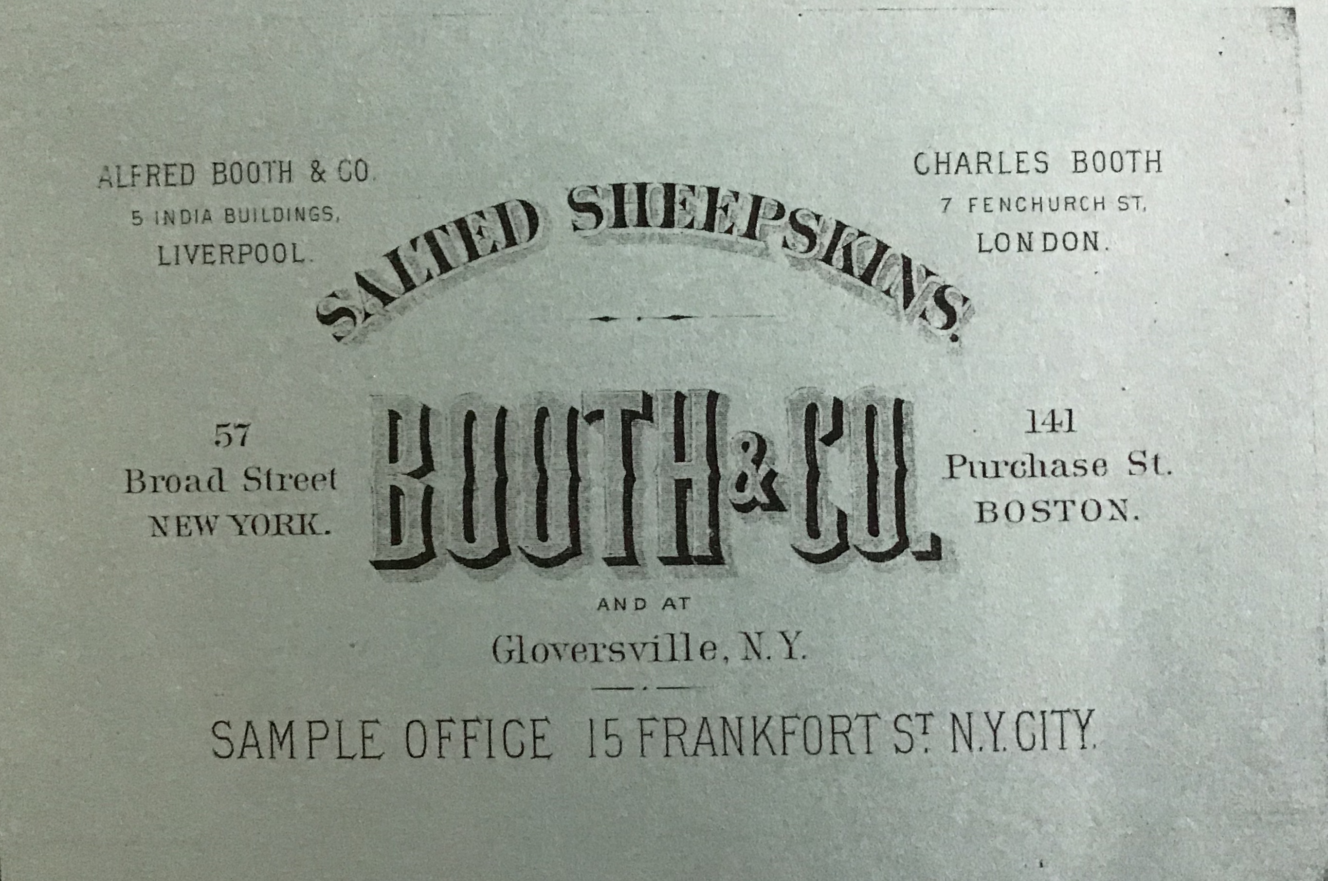 In January new Booth partnership formed, shipping light leather to US. Alfred Booth & Co. Two products: Sumac tanned sheep from Bermondsey for shoe uppers, and pickled grains and fleshes from Turneys of Trent Bridge, Boots of Leicester, and Johnston at Bootle. The Turneys had two other tanneries which we think were also involved. Brother Edward left the partnership in 1871 and owned Whitemoor Leather in Nottingham (this burnt down in 1888 and ended up going bankrupt in late 1900, being sold to Wade – largely financed by Booths – in 1901). Two other brothers William Jonadab and Henry, were in business in Stourbridge and very successful. William Jonadab tannery continued until 1957, and their father set up a glue factory nearby as well in the later 19th century.