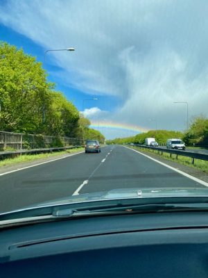 On the way we had a rainbow on the road. Rather cool.