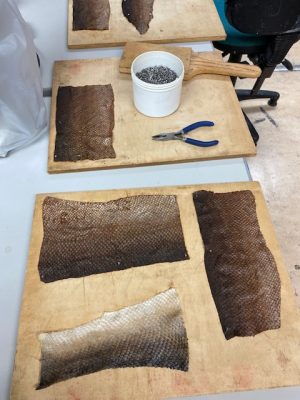 We reinstated the evening sessions with some gentle work vegetable tanning fish with tea bags – yes, tea has tannin in it, but Yorkshire is better than Tetley.