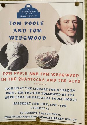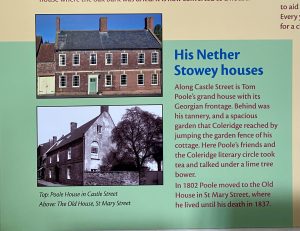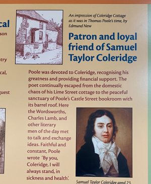 A rather muddled photo tour takes us past the bark mill Poole had built, stories about him and his philanthropy in the library which was packed for the lecture, tea in the garden behind Tom Poole’s house repeating the toast with cheese and cider given to Poole by Coleridge and his publisher when Coleridge’s wife walked through the garden with their child from the cottage Poole had arranged for them to join them. And a short play about the amazing life of Coleridge’s daughter Sara.